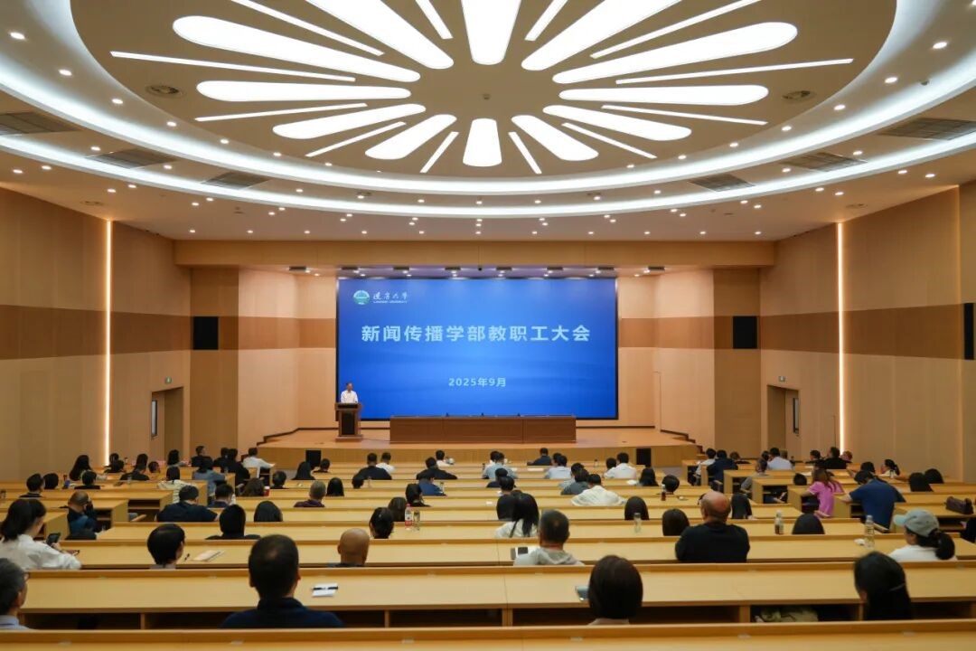 2025年9月23日,辽宁大学召开新闻传播学部教职工大会。校党委书记潘一山出席会议并讲话,校党委副书记张洪新主持会议,副校长闫海宣读《关于成立辽宁大学新闻传播学部的决定》。