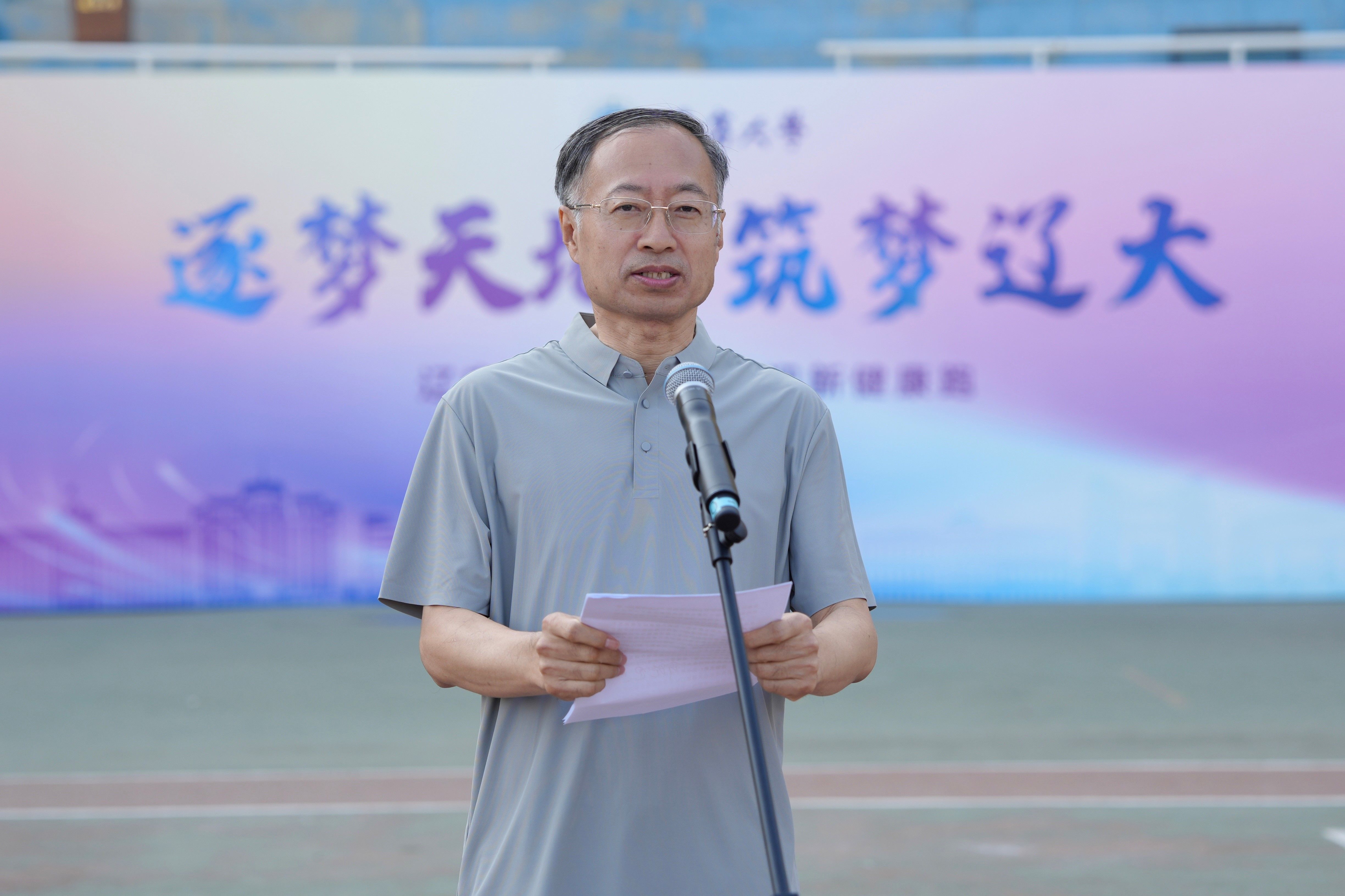 在激昂的旋律中,辽宁大学“逐梦天地 筑梦辽大”迎新校园健康跑活动于9月28日在两地三校区同时启动,这也为2025秋季学期的校园文化系列活动拉开帷幕。校党委书记潘一山出席蒲河校区校园健康跑活动并致辞。