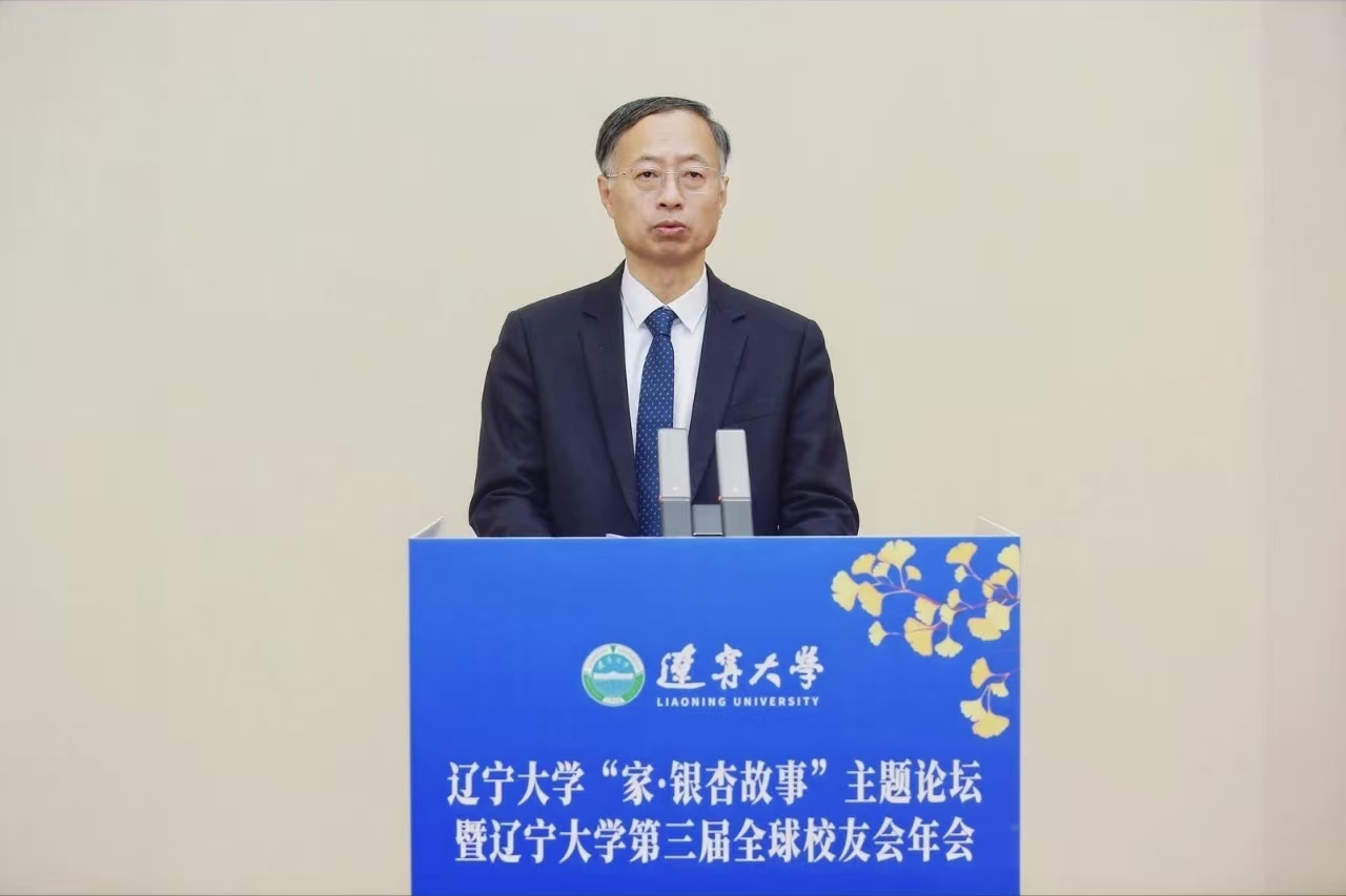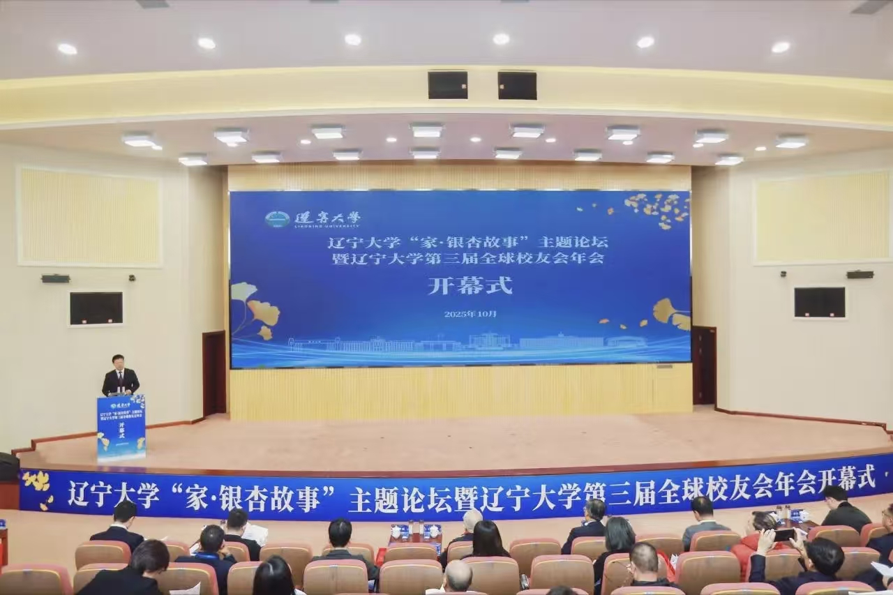 10月18日,辽宁大学“家・银杏故事”主题论坛暨辽宁大学第三届全球校友会年会在辽宁大学蒲河校区开幕。校党委书记潘一山出席会议并讲话。学校领导张洪新、霍春辉、王鹏出席会议。2025年重大捐赠项目捐赠方代表,辽宁大学教育基金会理事会成员、校友总会理事会成员、各地方校友会负责人、各学生培养单位推荐的知名校友代表、校友工作顾问、各学生培养单位负责校友工作的领导、在校师生代表以及校友服务志愿者共400余人参加开幕式。