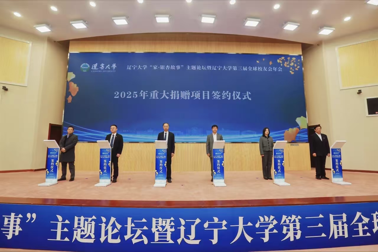 开幕式上举行了2025年重大捐赠项目签约仪式。潘一山与2025年重大捐赠项目捐赠方代表——辽宁省闽商公益基金会理事长倪新财,比亚迪股份有限公司人力资源处招聘总监许云龙,“人民教育家”国家荣誉称号获得者、中国政法大学终身教授、博士生导师张晋藩,江苏宜兴德融科技有限公司执行董事兼总经理、辽宁科京新材料有限公司董事长、辽宁大学校友总会荣誉顾问刘曙光等进行捐赠项目签约。